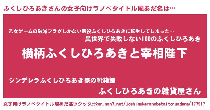 | 胡散臭い通販商品みたいなあだ名 | 『あなたにだけ特別に提供する世界で10本だけ現存している希少なブランデー…その名も「ふくしひろあき」』 |