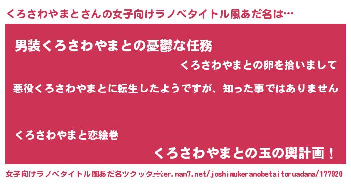 | 男性向けラノベタイトル風あだ名 | 『この素晴らしい世界にくろさわやまとを!』 |
