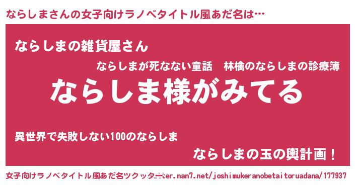 | ポケモン風あだ名 | 『ヒナラシマ』『ナラシダネ』 |