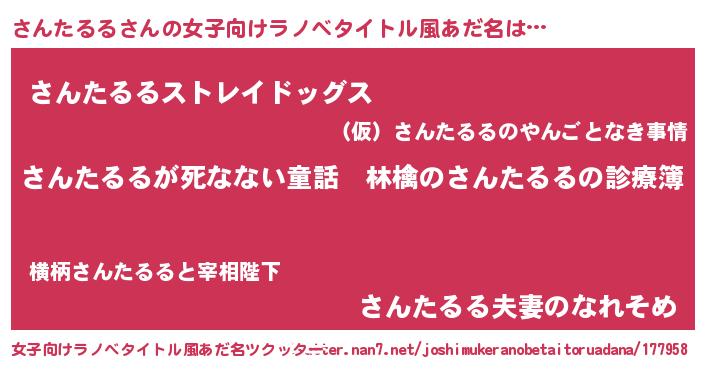 | 男性向けラノベタイトル風あだ名 | 『魔弾の王とさんたるる』 |