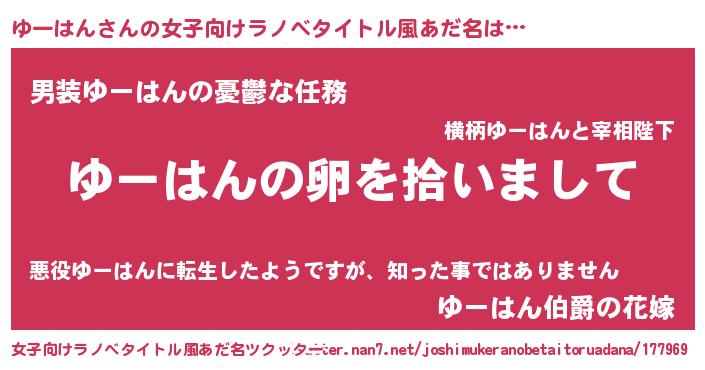 | ヘコむあだ名 | 『ゆーを』『レバニラ』 |