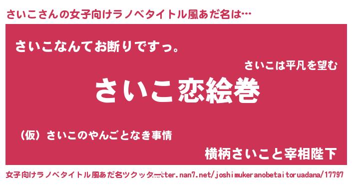 | 男性向けラノベタイトル風あだ名 | 『ノーゲーム・ノーサイコ』 |