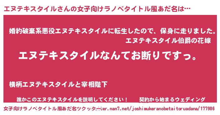 | 男性向けラノベタイトル風あだ名 | 『魔法科高校のエヌテキスタイル』 |