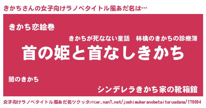 | 男性向けラノベタイトル風あだ名 | 『はたらくきかちさま!』『緋弾のキカチ』 |