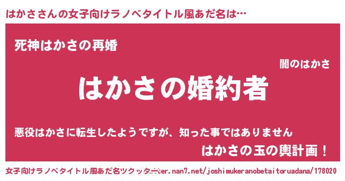 | 意味不明あだ名 | 『はかさフォーエバー』『自称はかさ』 |