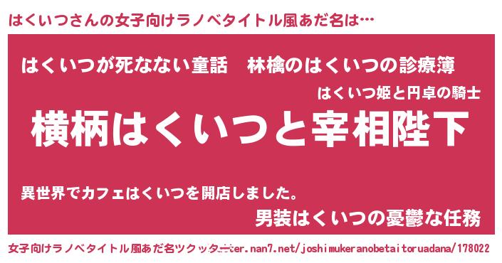 | 男性向けラノベタイトル風あだ名 | 『はくいつに滅ぼされるだけの簡単なお仕事です』 |