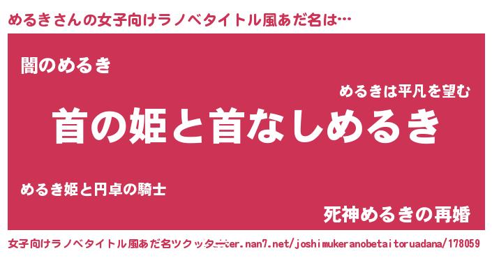 | 意味不明あだ名 | 『自称めるき』『眠気覚ましガムめるき味』 |