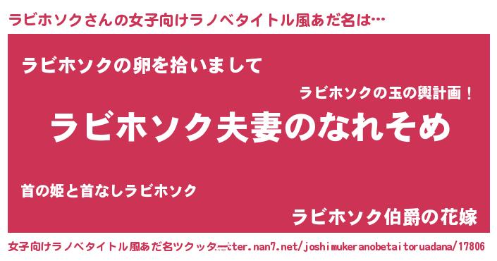 | 男性向けラノベタイトル風あだ名 | 『おまえをオタクにしてやるから、俺をラビホソクにしてくれ! 』 |