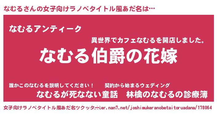 | 意味不明あだ名 | 『なむるフォーエバー』『自称なむる』 |
