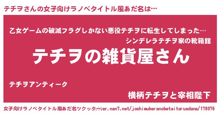 | 男性向けラノベタイトル風あだ名 | 『やはりテチヲの青春ラブコメはまちがっている 』 |