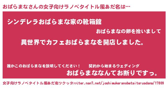 | 男性向けラノベタイトル風あだ名 | 『誰もが恐れるあのおばらまなが、ぼくの専属メイドになるようです。』 |