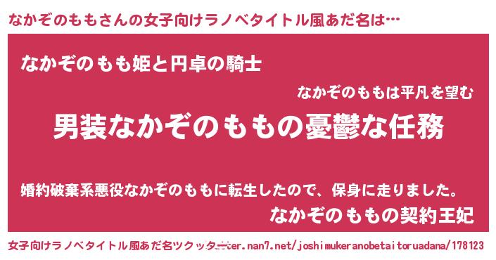 | 胡散臭い通販商品みたいなあだ名 | 『モテモテ間違いなしブレスレット…その名も「なかぞのもも」』 |