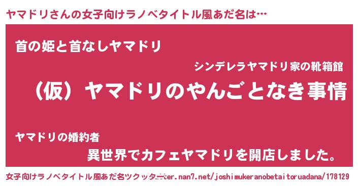| ファンタジー風あだ名 | 『ヤマフェル』『ヤマディッシュ』 |