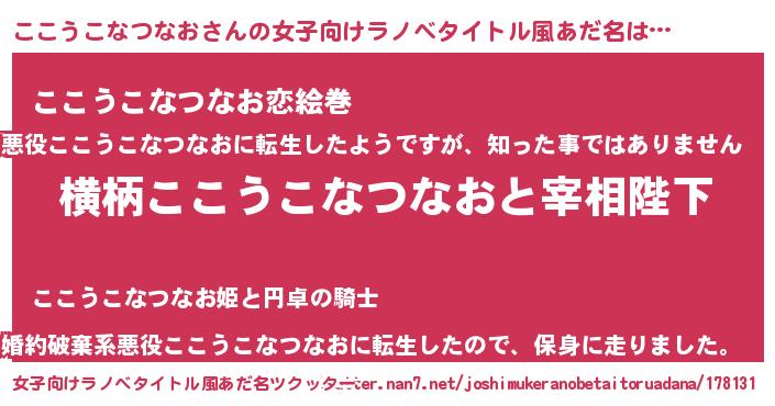 | 男性向けラノベタイトル風あだ名 | 『ここうこなつなおに滅ぼされるだけの簡単なお仕事です』 |