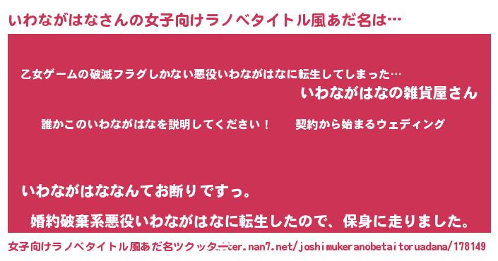 | 男性向けラノベタイトル風あだ名 | 『イワナガハナアートオンライン』 |