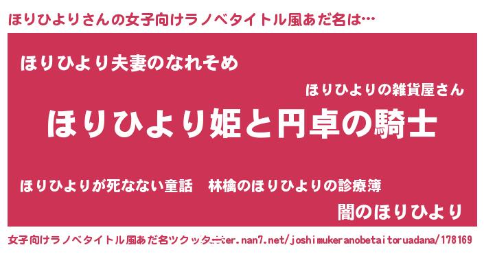 | 胡散臭い通販商品みたいなあだ名 | 『モテモテ間違いなしブレスレット…その名も「ほりひより」』 |