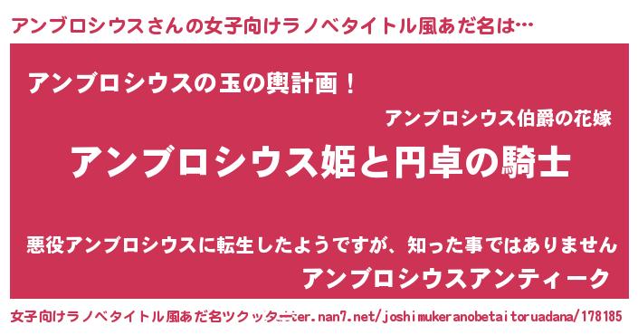 | 男性向けラノベタイトル風あだ名 | 『アンブロシウスの憂鬱』 |