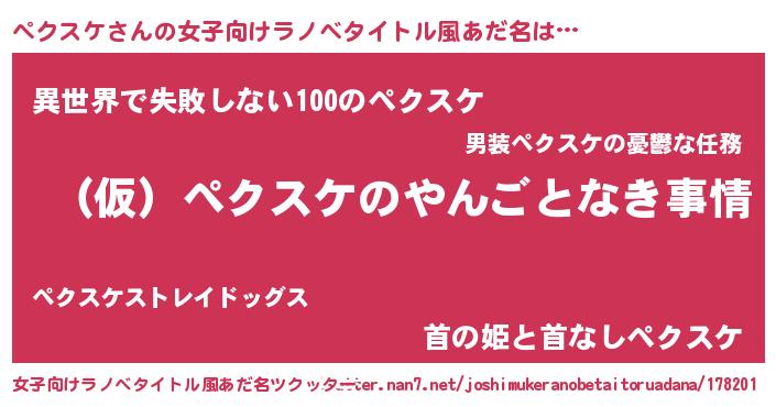 | 意味不明あだ名 | 『ペロリンペクスケ』『永久保存ペクスケ』 |