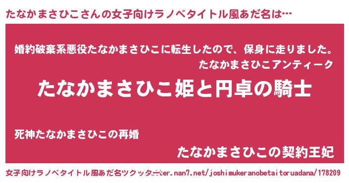 | 男性向けラノベタイトル風あだ名 | 『たなかまさひこの憂鬱』 |