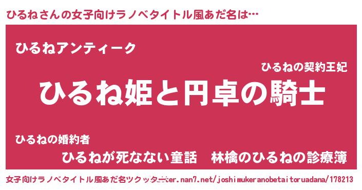 | ヘコむあだ名 | 『ひるっふぃ~』『ひるね(小並感)』 |