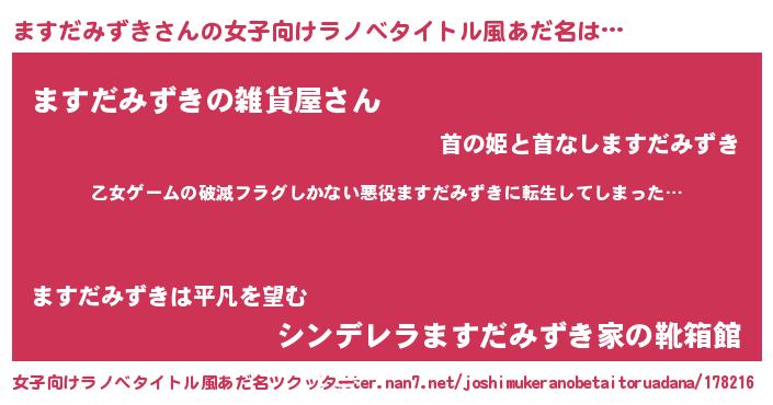 | 男性向けラノベタイトル風あだ名 | 『魔弾の王とますだみずき』 |