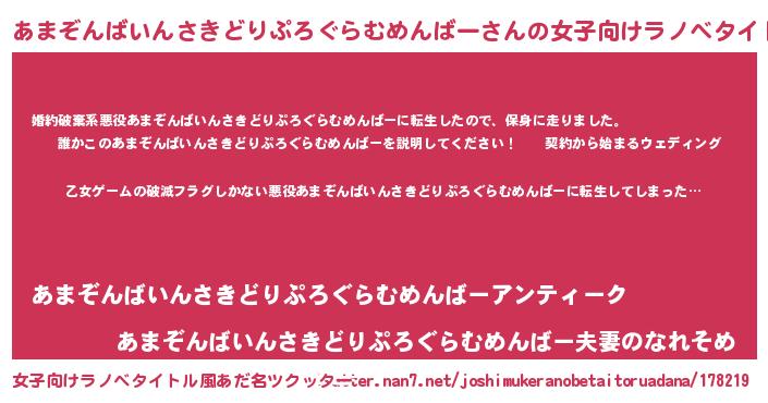 | 男性向けラノベタイトル風あだ名 | 『この素晴らしい世界にあまぞんばいんさきどりぷろぐらむめんばーを!』 |