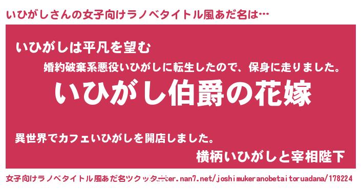 | 男性向けラノベタイトル風あだ名 | 『やはりいひがしの青春ラブコメはまちがっている 』 |