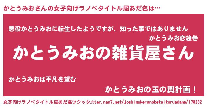 | 男性向けラノベタイトル風あだ名 | 『やはりかとうみおの青春ラブコメはまちがっている 』 |