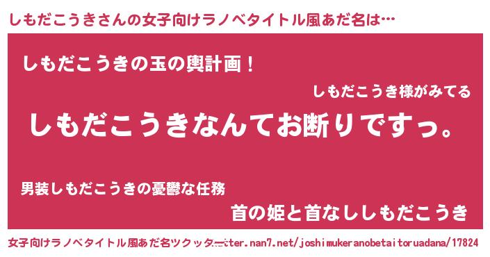 | 意味不明あだ名 | 『自称しもだこうき』 |