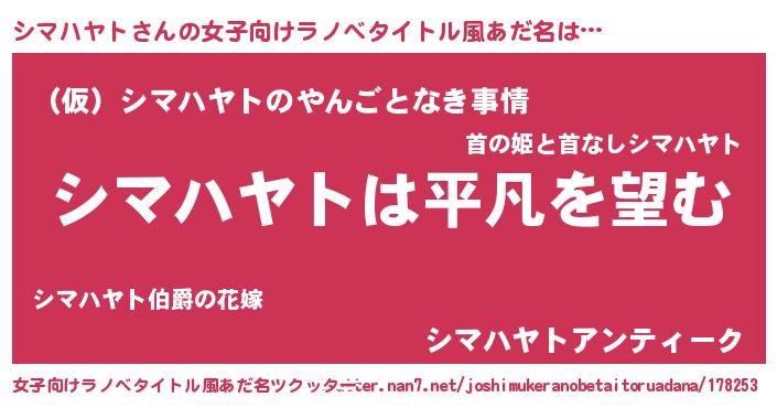 | ヒーロー風カッコイイあだ名 | 『暗黒騎士シマ』『スーパーシマハヤト』 |