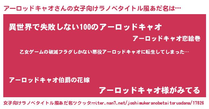 | 意味不明あだ名 | 『住所不定無職アーロッドキャオ(47歳)』 |