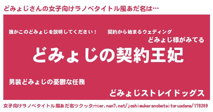 | 男性向けラノベタイトル風あだ名 | 『どみょじという概念が存在しない退屈な世界 』 |