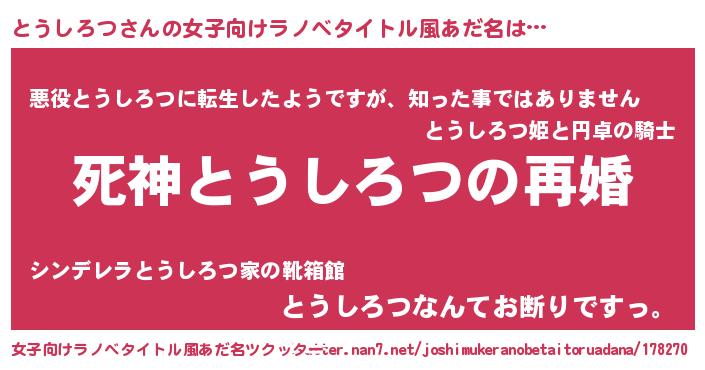 | ピコ太郎風あだ名 | 『トト太郎』『トコ八郎』『トウ太郎』 |