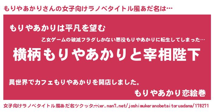 | 男性向けラノベタイトル風あだ名 | 『もりやあかりに滅ぼされるだけの簡単なお仕事です』 |