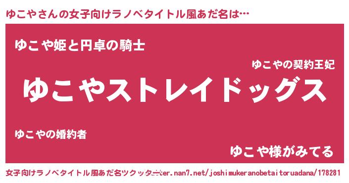 | 意味不明あだ名 | 『自称ゆこや』『ペロリンゆこや』 |