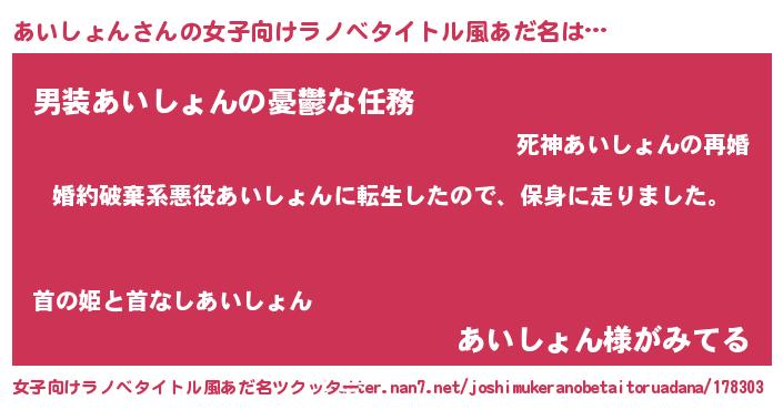 | 男性向けラノベタイトル風あだ名 | 『アイションスレイヤー』 |