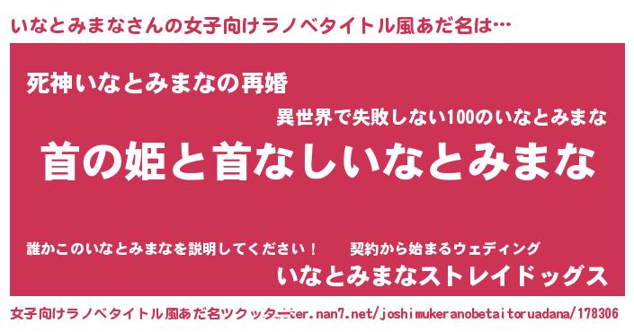 | 男性向けラノベタイトル風あだ名 | 『はたらくいなとみまなさま!』 |