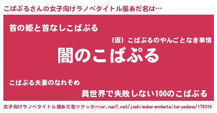 | 意味不明あだ名 | 『自称こばぷる』『永久保存こばぷる』 |