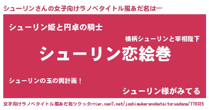 | ヒーロー風カッコイイあだ名 | 『愛の使者シューリン』『幻影騎士シュ』 |