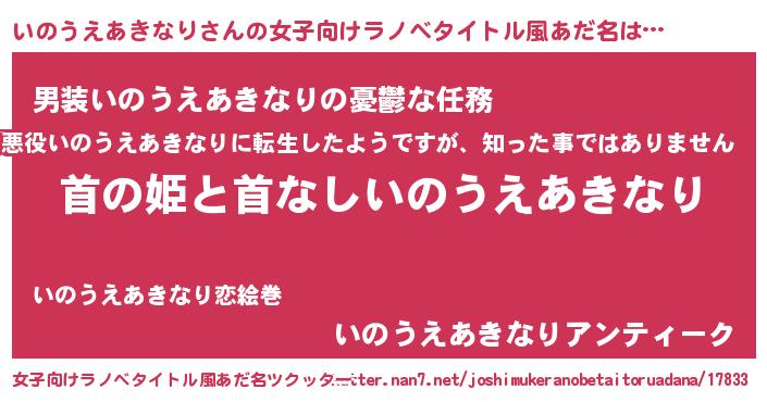 | 意味不明あだ名 | 『自称いのうえあきなり』 |