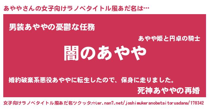 | ヒーロー風カッコイイあだ名 | 『最強戦士アヤヤ』『友情の使者あやや』 |