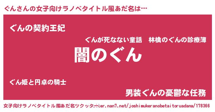 | 男性向けラノベタイトル風あだ名 | 『Re:ぐんから始める異世界生活』 |