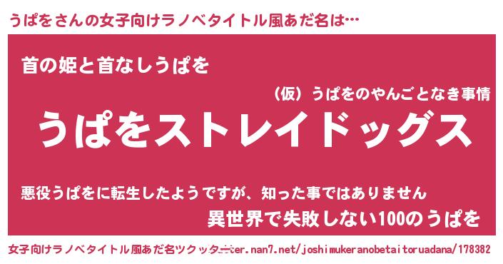 | 意味不明あだ名 | 『自称うぱを』『永久保存うぱを』 |