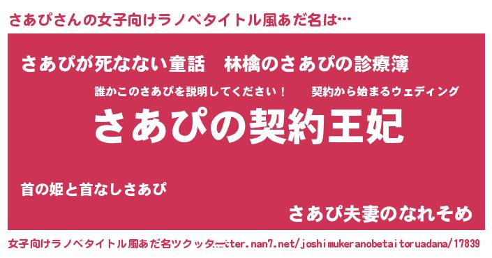 | 男性向けラノベタイトル風あだ名 | 『誰もが恐れるあのさあぴが、ぼくの専属メイドになるようです。』 |