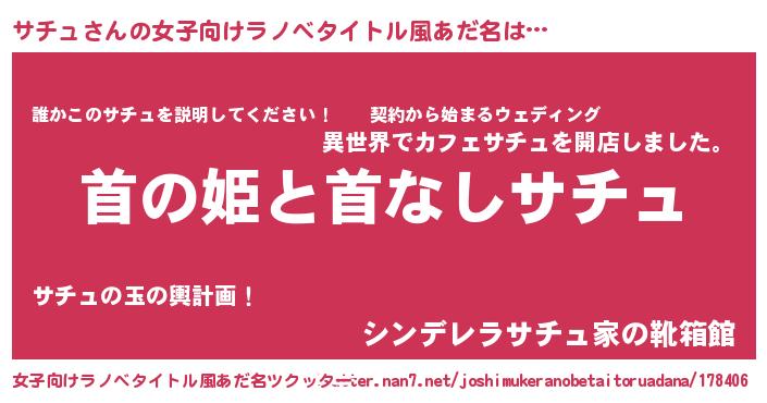 | 胡散臭い通販商品みたいなあだ名 | 『必ず成功する水晶球…その名も「サチュ」』 |