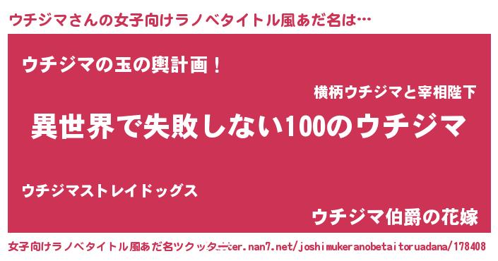 | 男性向けラノベタイトル風あだ名 | 『ウチジマという概念が存在しない退屈な世界 』 |