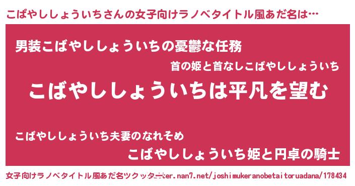 | 胡散臭い通販商品みたいなあだ名 | 『信頼と実績のサプリメント…その名も「こばやししょういち」』 |