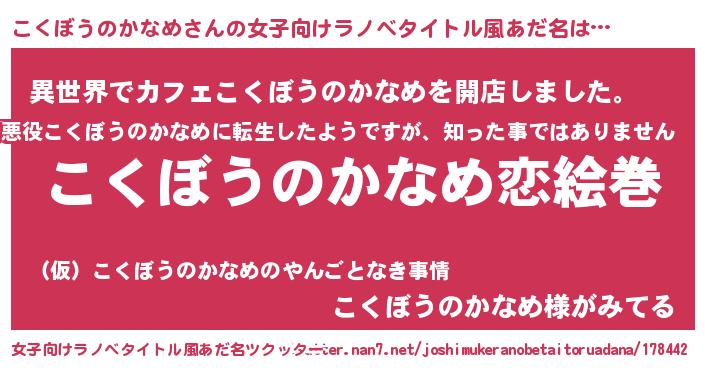 | ヘコむあだ名 | 『こくぼうのかなめ(爆)』『こくっ子』 |