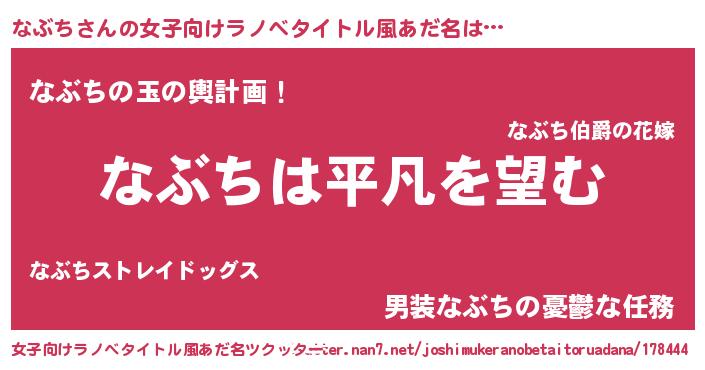 | ヒーロー風カッコイイあだ名 | 『暗黒騎士ナブ』『ウルトラなぶちマン』 |