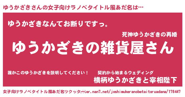 | 男性向けラノベタイトル風あだ名 | 『やはりゆうかざきの青春ラブコメはまちがっている 』 |
